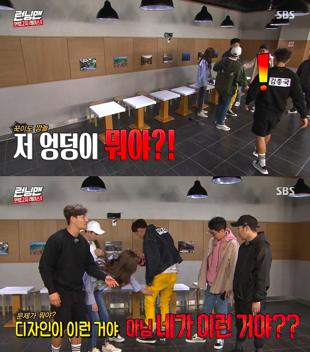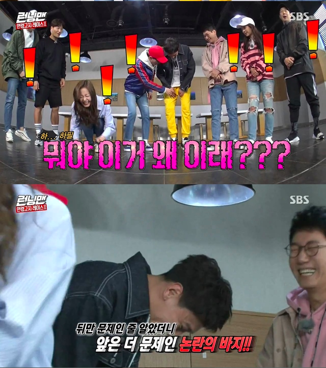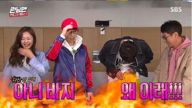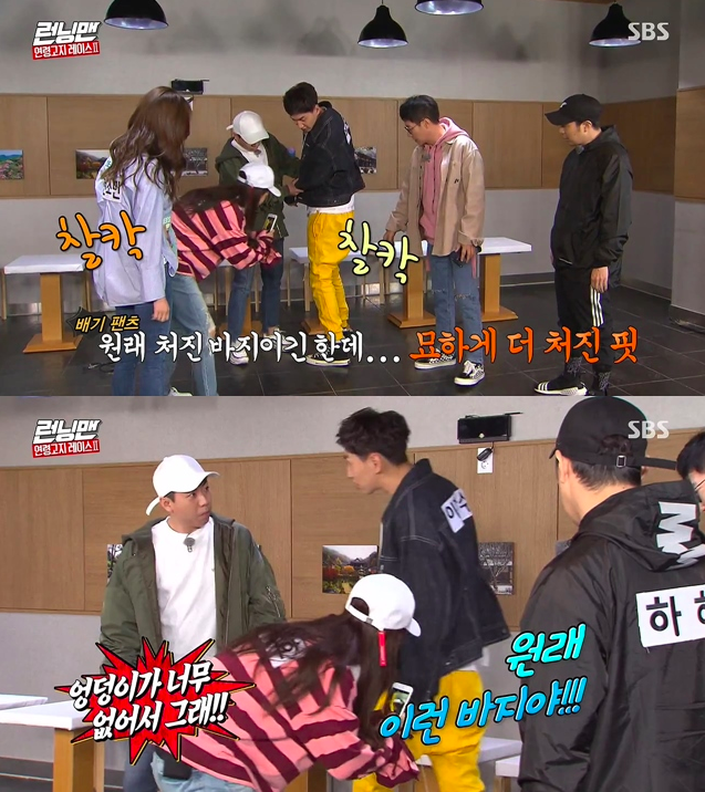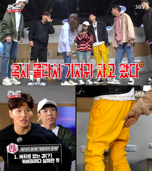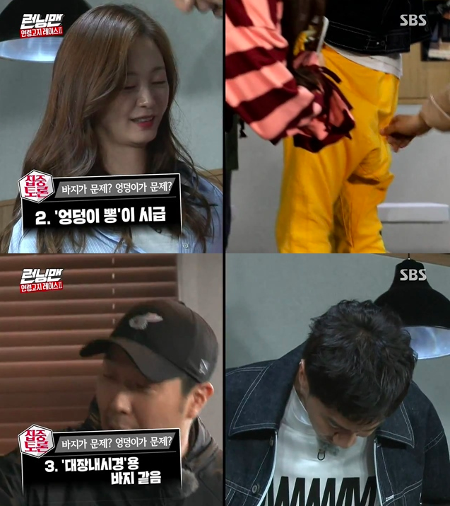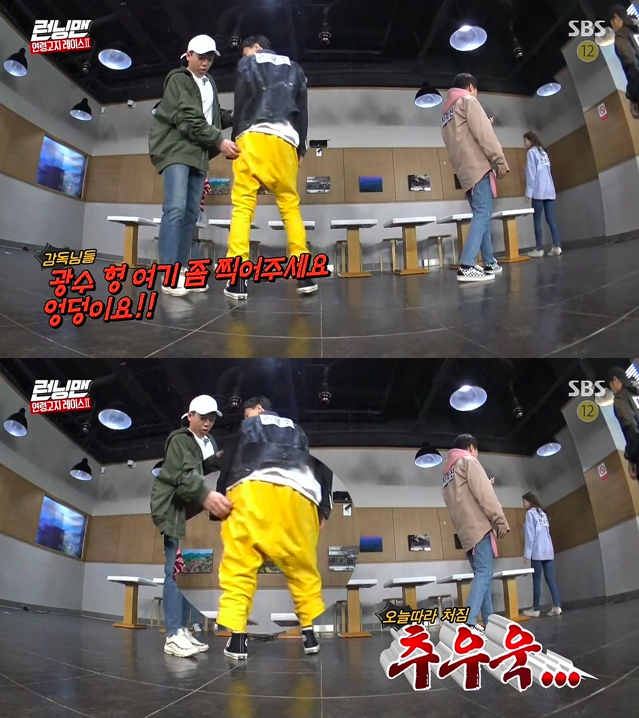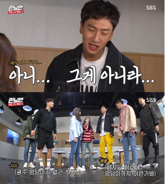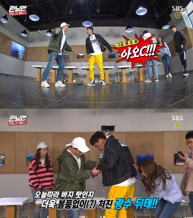 출연진들은 일제히 “광수가 엉덩이가 없어서 그런거다” 며 놀려댔고, 이광수는 폭발해 “제발 바지에 신경쓰지 말라”며 역정을 냈다.