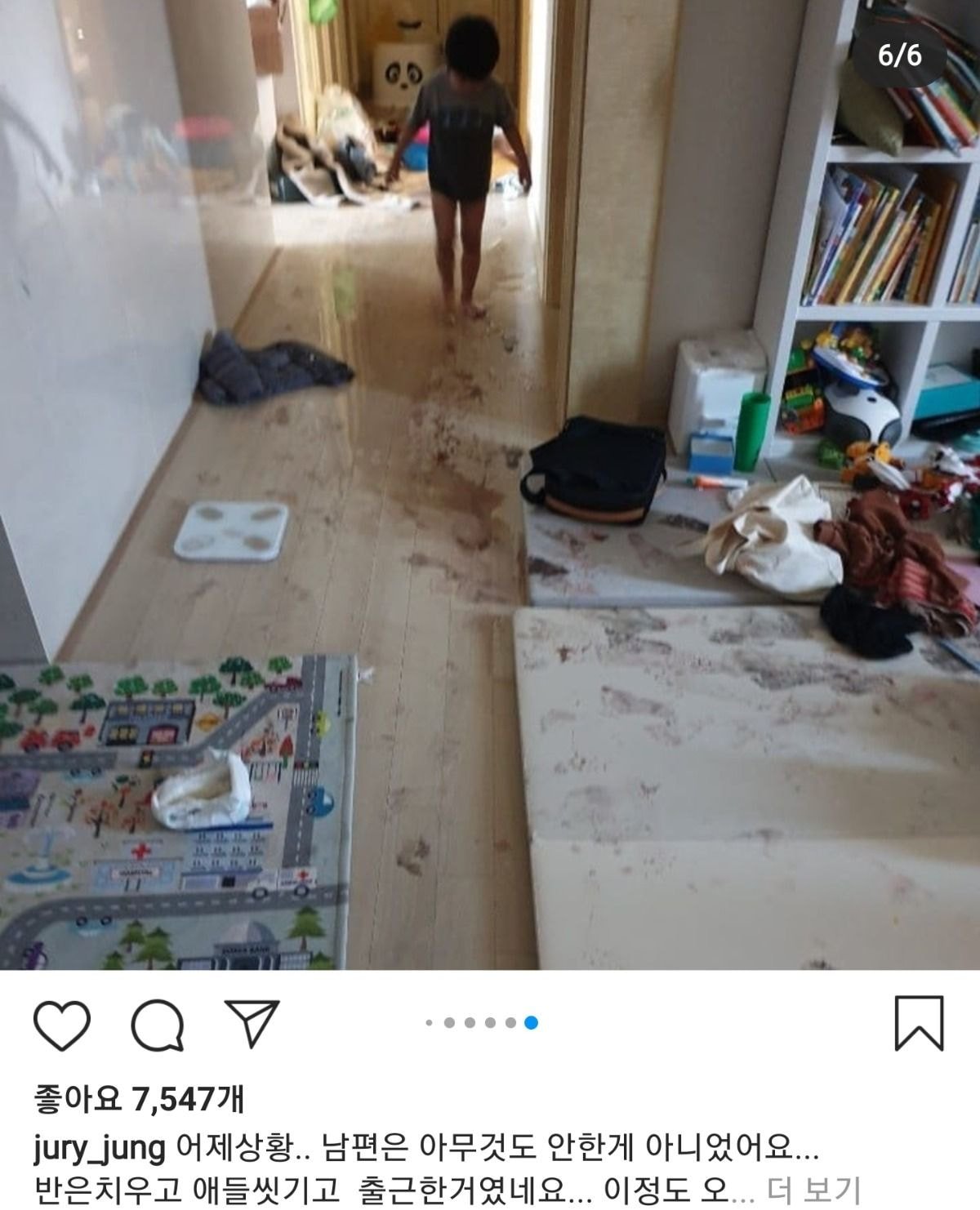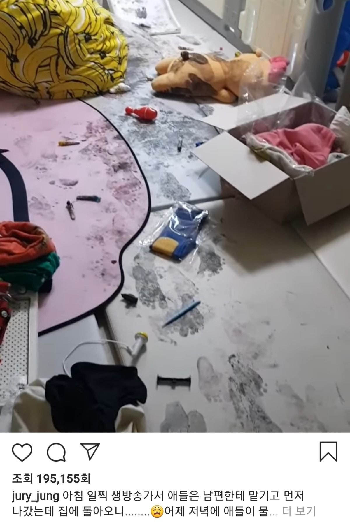 집에서 현실 육아 중인 개그우먼 정주리가 인스타그램을 통해 공개한 화제다.
