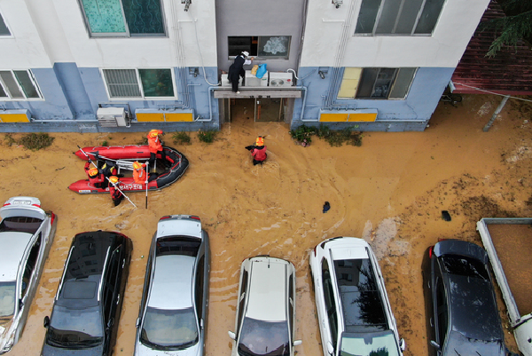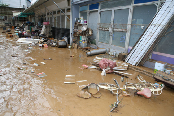주차장에는 사모장의 허리까지 물이 찼으며 앞 유리만 보일 만큼 차량은 완전히 침수된 상태다.