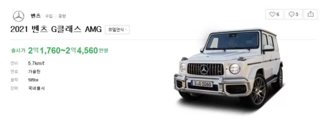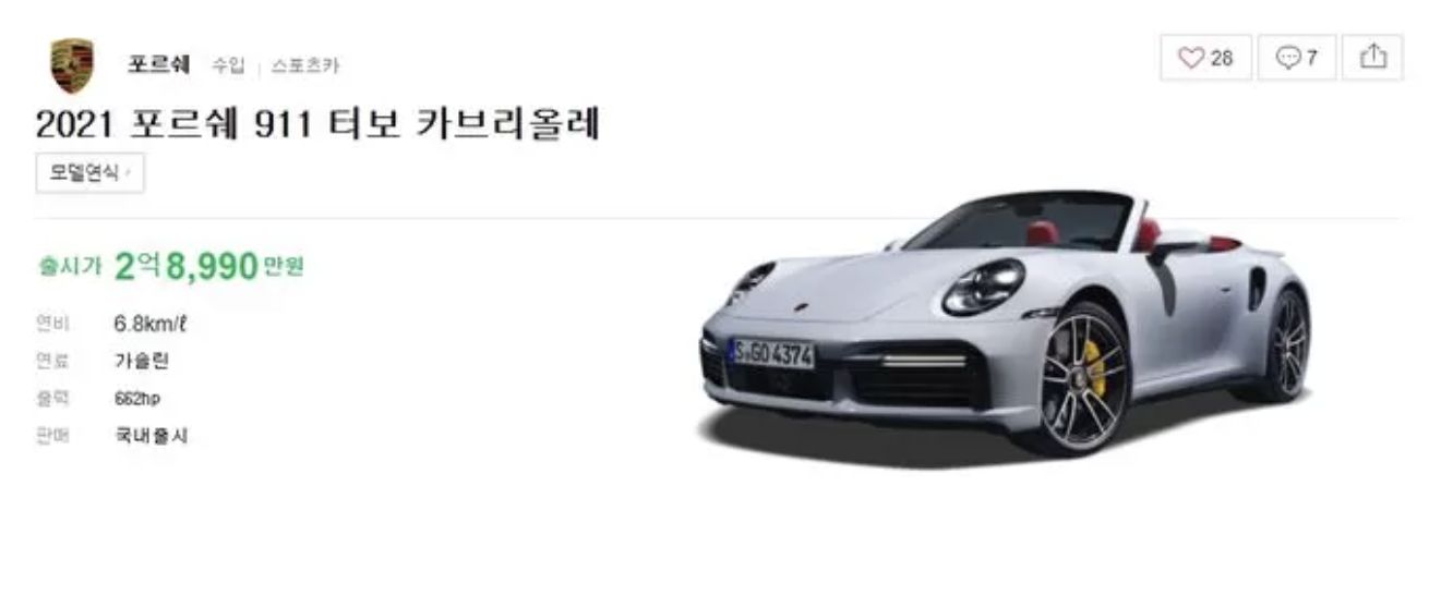 포르쉐 992 신형의 가격은 최소 1억 4,790만원에서 2억 8,990만원까지 형성돼 있고 벤츠 지바겐(G클래스 AMG)은 최소 2억 1,760만원에서 2억 4,560만원으로 형성돼 있다.