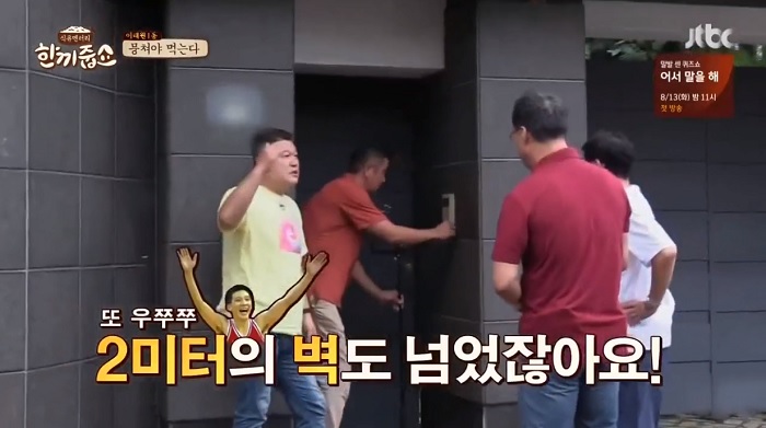 허재는 “고장이 아니라 비밀번호를 누르는 문인 것 같다”고 말했고 이경규는 옆에서 “자동으로 열리는 문 아니냐”는 의견을 더하며 주택 앞에 문을 열기 위한 사투를 벌였다.