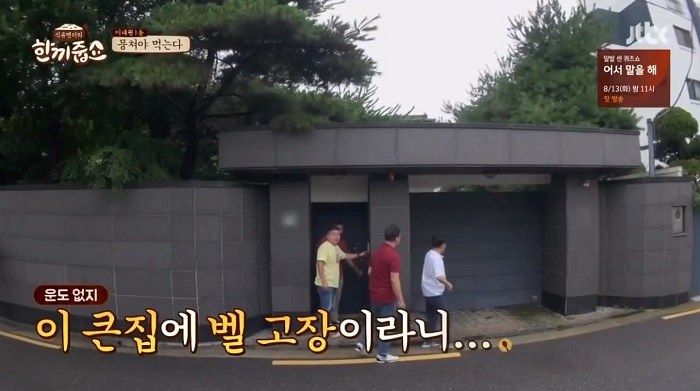 그러나 해당 초인종은 고장이 난 것인지 소리가 들리지 않았고 이에 강호동은 “벨이 고장났나?”하고 의아해 했다.