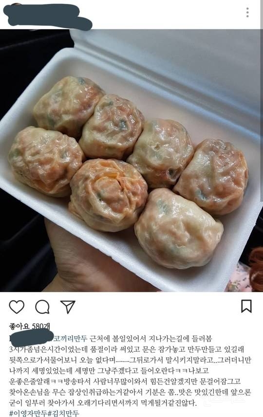 이어 “품절이라 써있고 문은 잠가놓고 만두를 만들고 있길래 뒤쪽으로 가서 물어봤다. ‘오늘 없다’, ‘그 뒤로 가서 말 시키지 말라’고 하더니 우리한테만 그냥 주겠다더라”고 말했다.