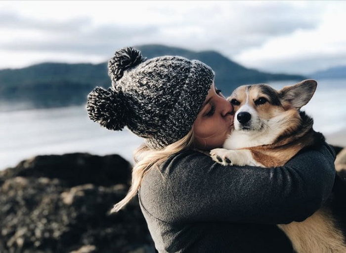 웰시코기 코라는 남성의 곁에 엉덩이를 붙이고 앉아서는 마치 그에게 “울지 말아요”라며 위로를 건네는 것 같았다.