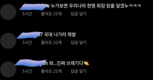 일부 누리꾼들은 보기에도 눈살이 찌푸려질 정도의 수위 높은 욕설을 남기기도 했다.