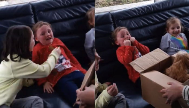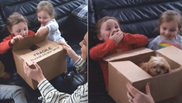 강아지를 데리고 집으로 돌아온 소냐는 강아지를 박스에 넣고 매디에게 건네주었다.