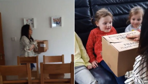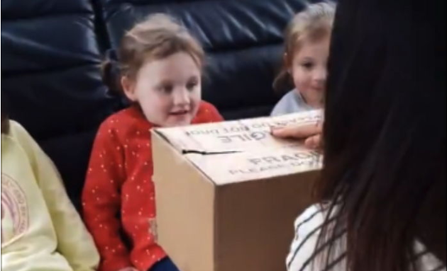 매디는 박스를 여는 순간 기뻐하며 소리를 질렀다.