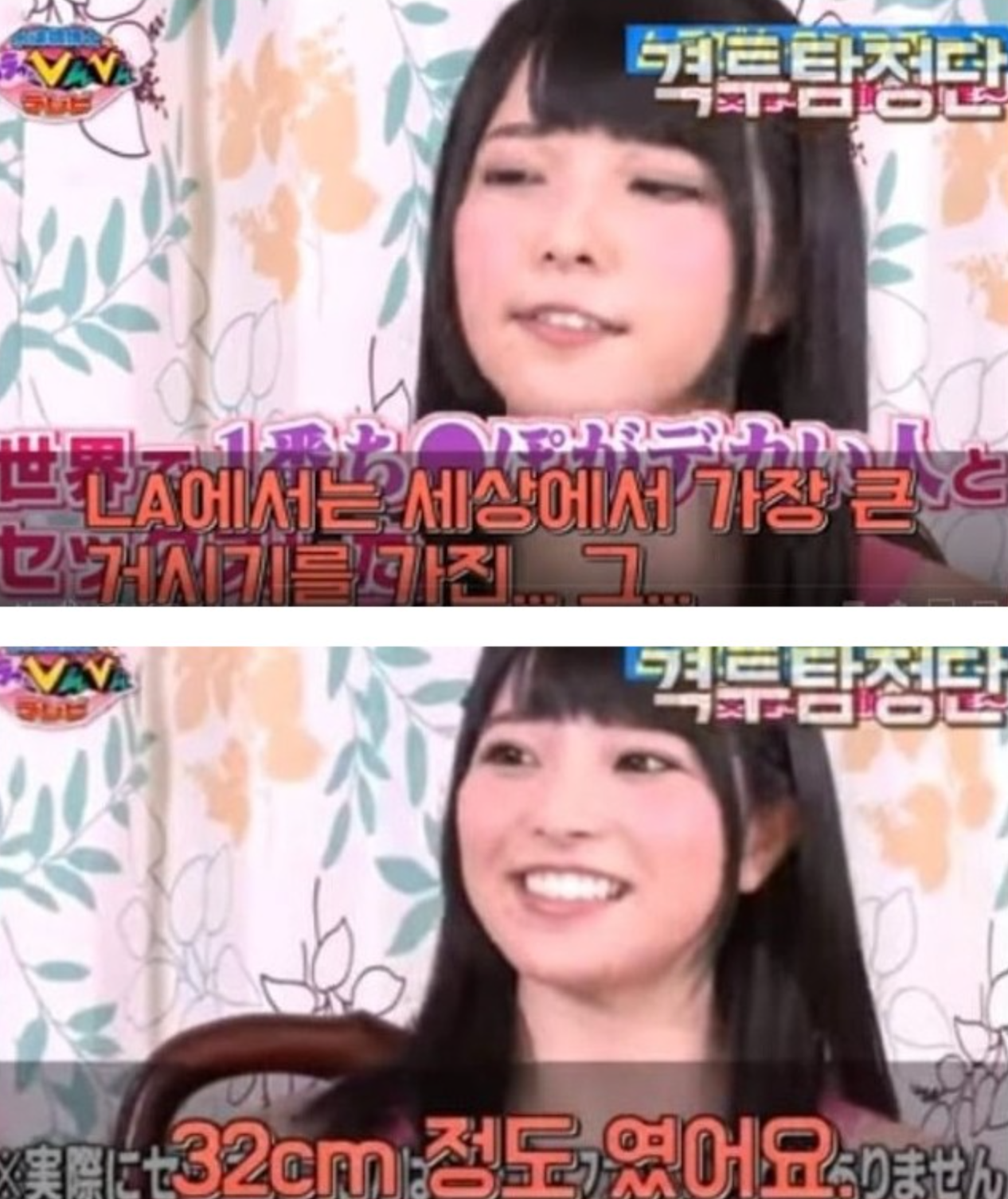 그런데 LA에서 만난 그 남성의 성.기 크기는 무려 32cm 라고 밝혔다. 웃으며 매우 컸다고 말하는 탤런트에게 “들어갔습니까?”라고 묻자 여성은 “아뇨, 울어버렸어요” 라고 대답했다.
