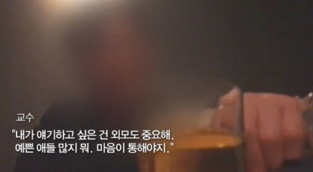 영상 속에서 A 교수는 제자 B 씨를 으슥한 유흥주점으로 불러냈다.