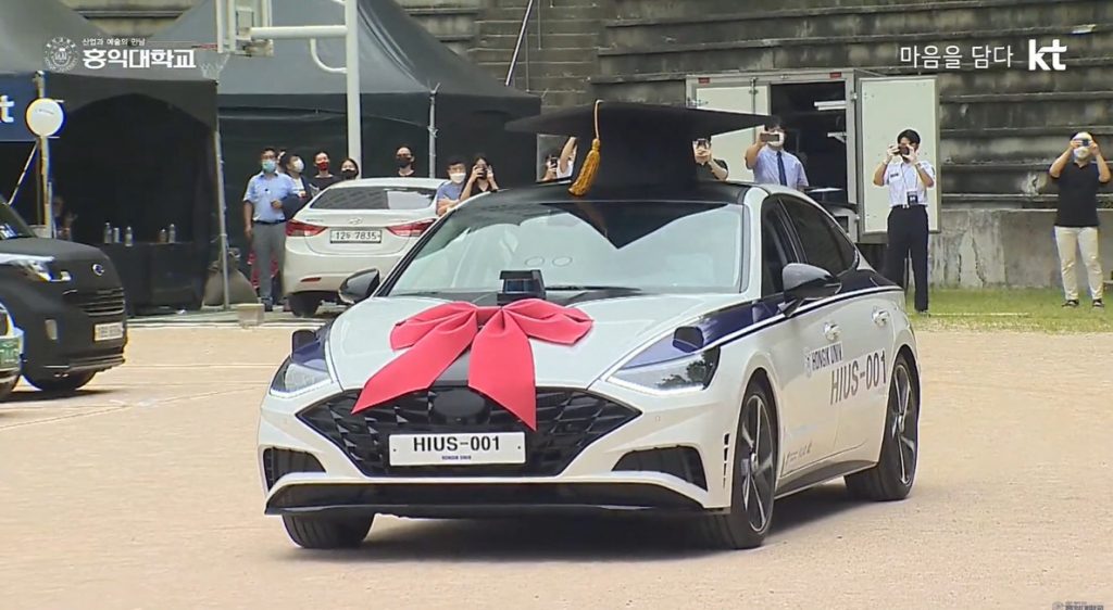 또한 홍익대는 “오직 홍익대에서만 볼 수 있는 장면”이라며 졸업식 대표 학생을 태워 자율주행차 퍼포먼스를 하기도 했다.