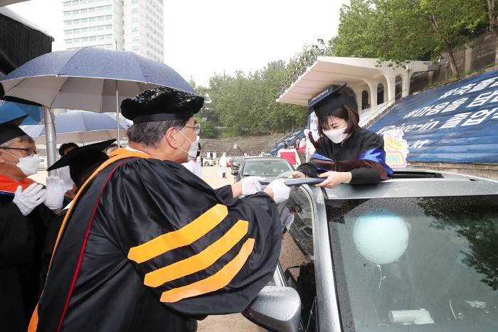 홍익대학교에서 ‘드라이브 인 졸업식’이 열렸다.
