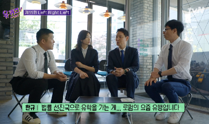 김한규는 “파트너가 되기 전 법률 선진국으로 유학을 가는 게 로펌의 유행이다”며 “저희도 로펌에서 근무한 다음에 미국에서 로스쿨 석사 과정을 마치고 뉴욕주 변호사 자격증도 취득할 겸 유학을 다녀왔다”고 설명했다.