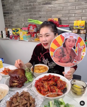 함소원은 변함없이 먹방을 진행하며 자신이 홍보하는 제품을 먹고 있고, 그의 시어머니도 역시 마찬가지다.