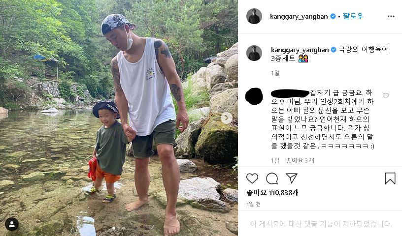개리가 아들 하오와의 일상을 자신의 SNS를 통해 공개했다.