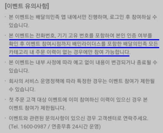 A 씨는 “실제 핸드폰으로 보면 유의사항이 ‘깨알 같은 안내’였다”라며 “본 이벤트에 참여 이력이 있는 경우 참여가 제한된다는 게 안내이다”라면서 “휴대폰을 바꿨으나 결제할 때 할인 적용을 하지 못했다”고 설명했다.
