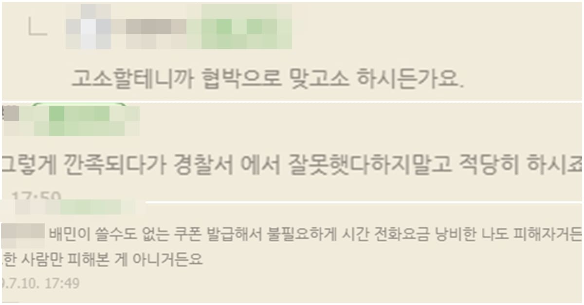 배달의 민족은 “A 씨가 사과하지 않으면 고소를 진행하겠다”면서 협박을 했다고 한다.