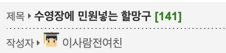 “늙은이가 무슨 수영을 한다고 삼도천이나 수영할것이지” “실제로 수영장가면 할매들이 대다수임. 지들끼리 무리 이뤄서 신규회원들 텃새 엄청 부린다.. 특히 젊은여자들한테”