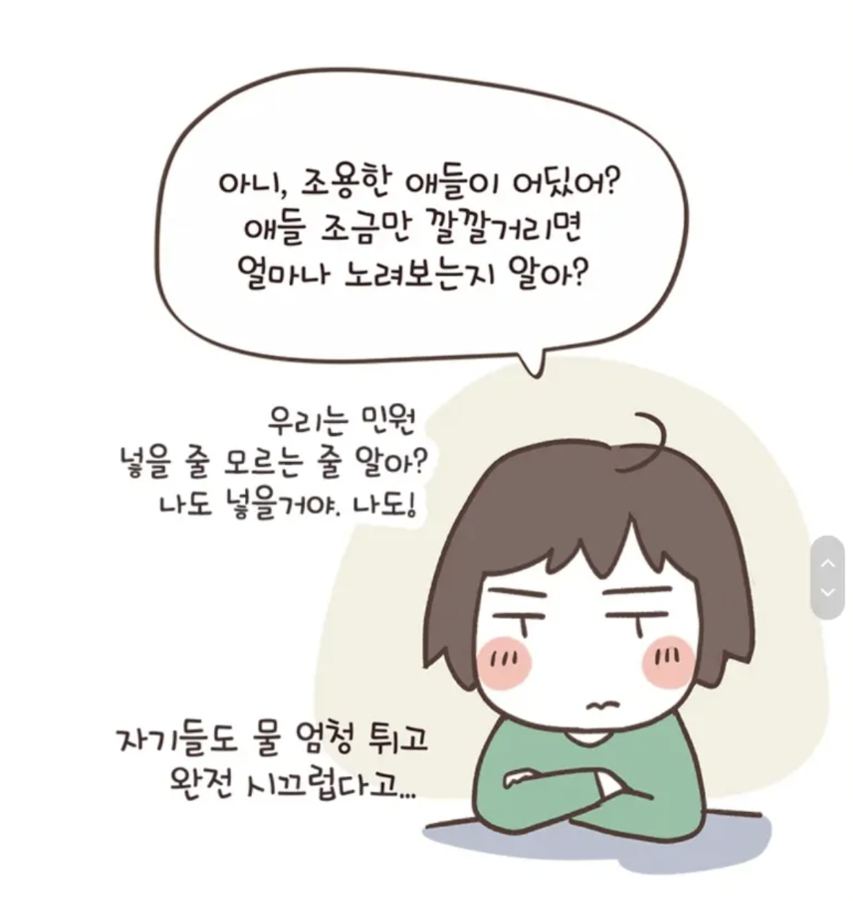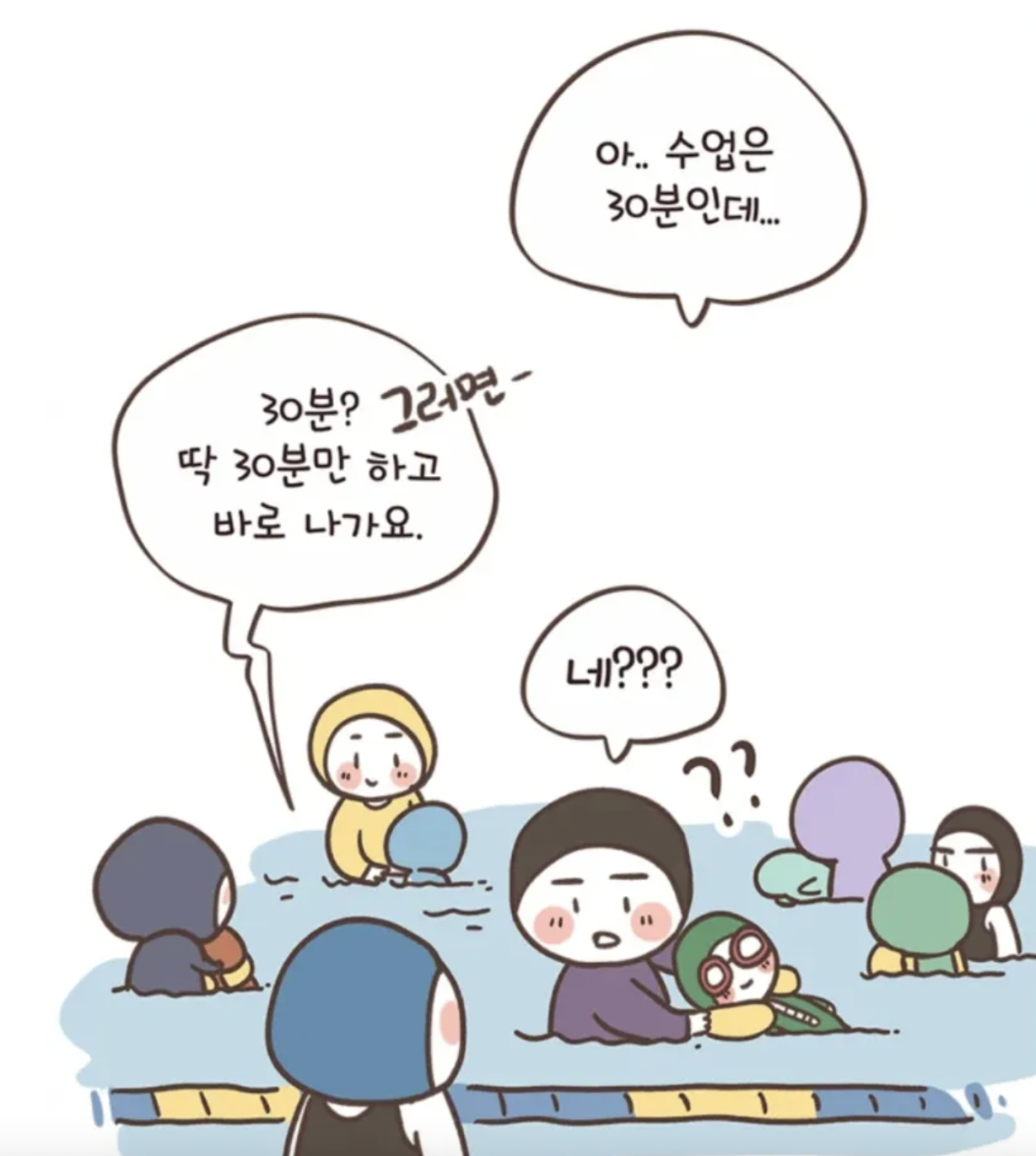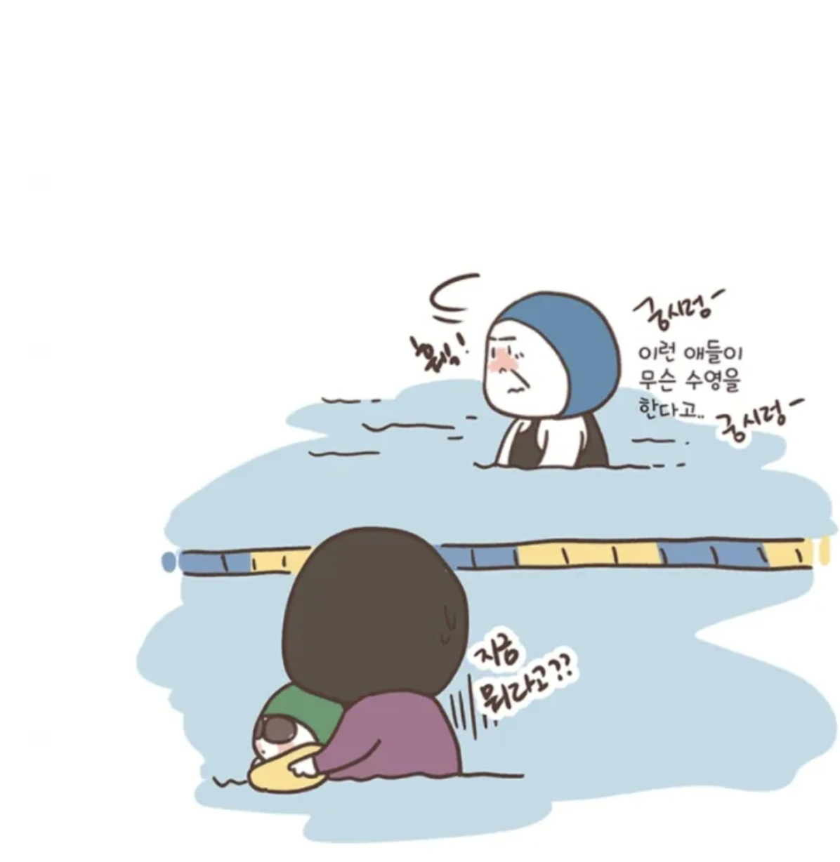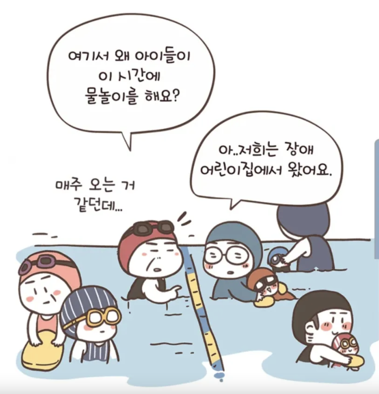 왜 아이들이 자신들과 같은 시간에 물놀이를 하냐며 눈치를 주기 시작하더니 꼭 자신들과 같은 시간에 해야하냐며 다른 시간에 좀 하라고 핀잔을 줬다.