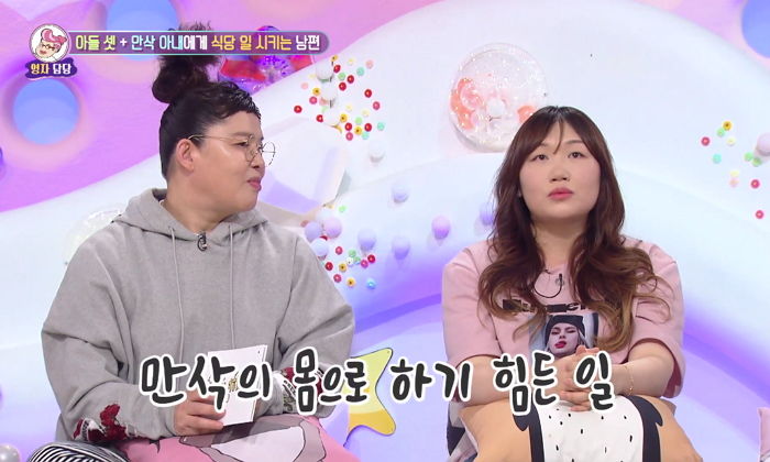 이날 고민의 주인공은 각 8, 6, 4세인 세 아들의 엄마이자 임신 9개월 차에 접어든 만삭이었다. 아내는 “현재 연어 초밥 가게까지 운영하고 있다”고 소개했다.