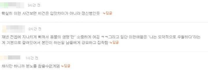 비건들이 비건의 삶을 지향하는 것을 벗어나 강요를 하고 있기 떄문.