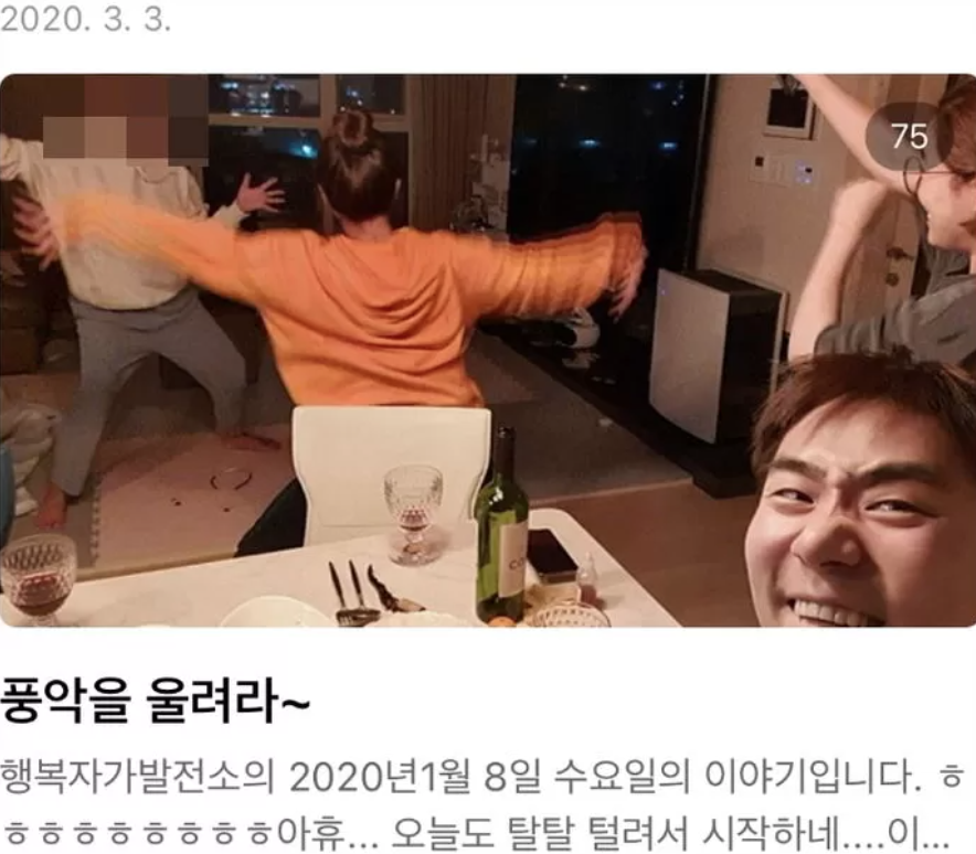 앞서 이날 한 온라인 커뮤니티에 이정수의 층간소음을 폭로하는 내용의 글이 게재됐는데 게시물 속 사진에는 2년 전 이정수가 집에 스피커와 테이블을 설치하고 지인을 불러 파티를 즐기는 모습이 담겨져 있었다.