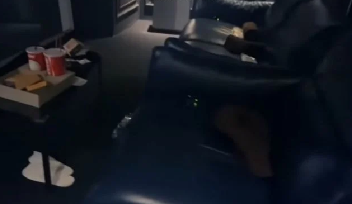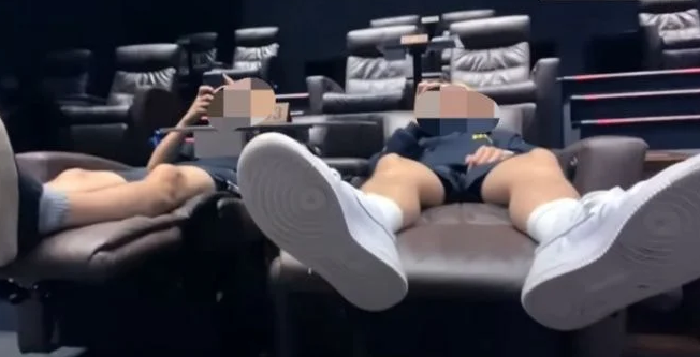 해당 사진 속 유튜버는 용산 CGV에 들어가 아이맥스관, 4DX 스크린관에 앉아서 휴식을 취하고 있다.