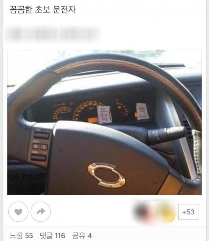 해당 팁은 종이에 브레이크와 엑셀을 적은 후 자동차 계기판에 붙여놓는 방법이었다.