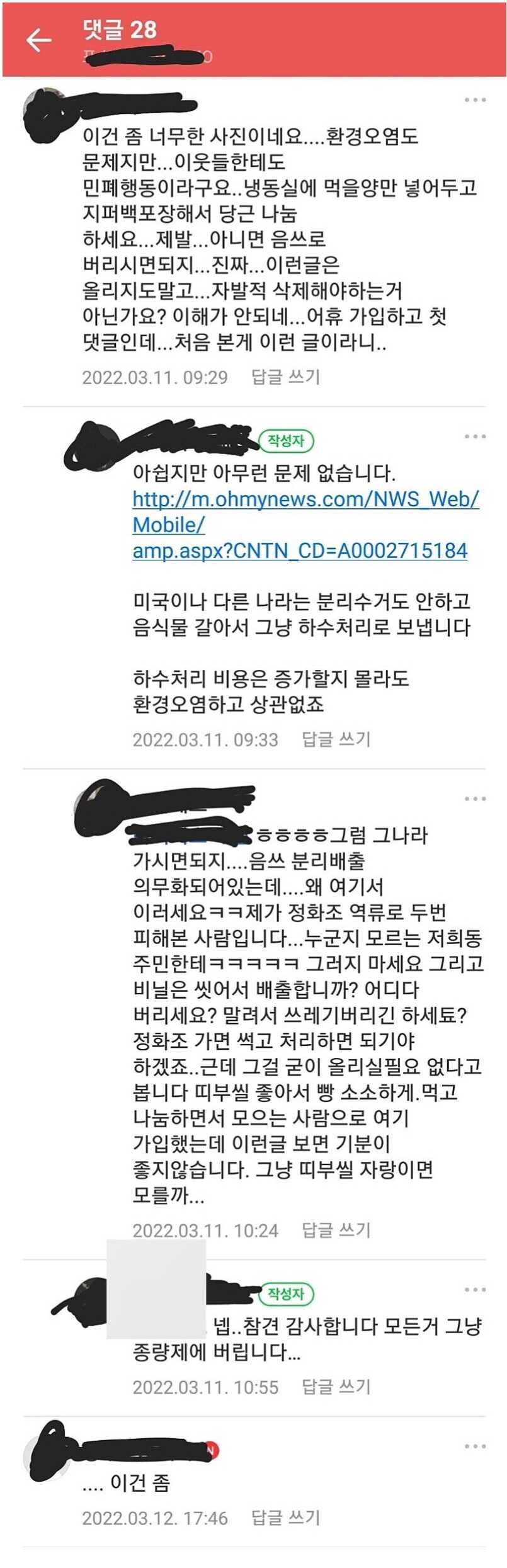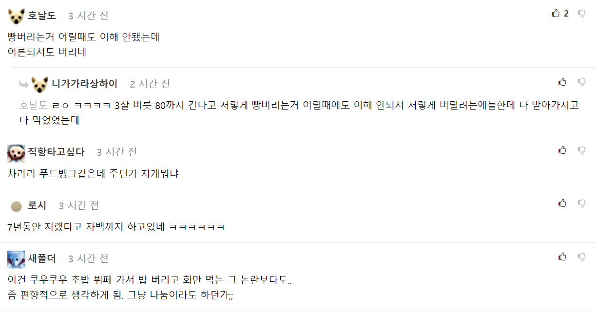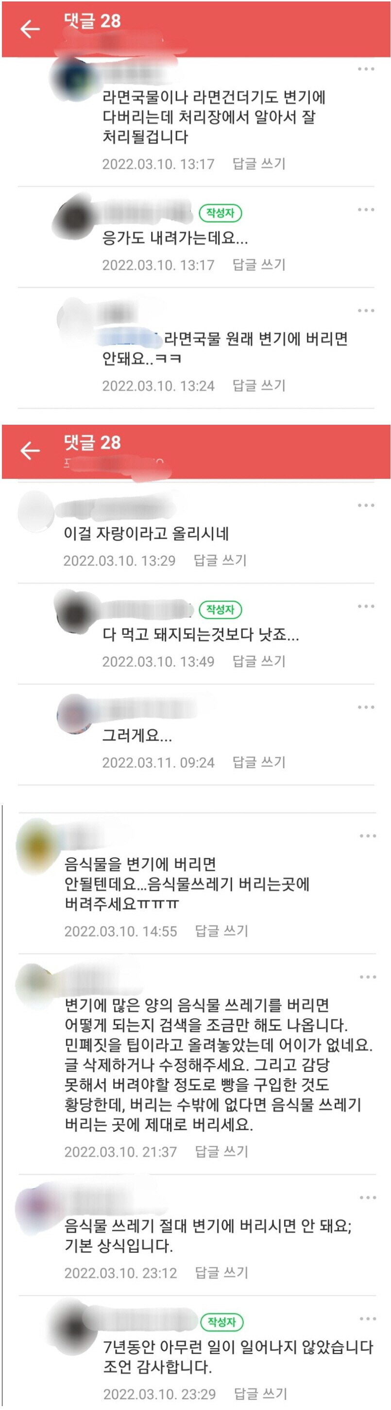 또 “음식물 쓰레기는 음식물 쓰레기봉투에 버려야죠. 변기에 버리면 절대 안 됩니다.”라는 반응도 보였다.