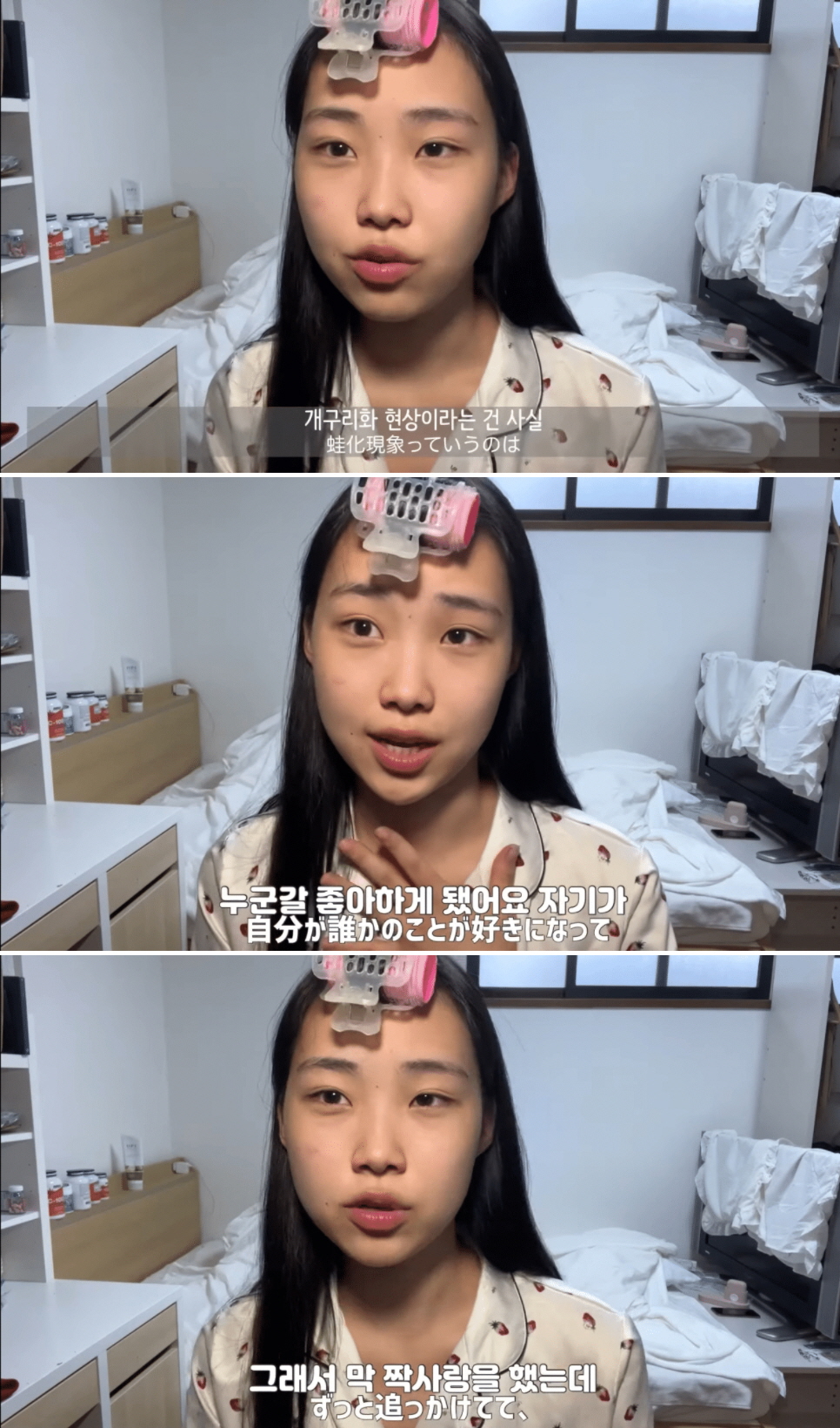 유튜버 민조엥은 “개구리화 현상이라는 건 짝사랑이 이루어진 순간에 상대가 싫어지는 현상을 뜻합니다.”라며 이야기를 시작했다.