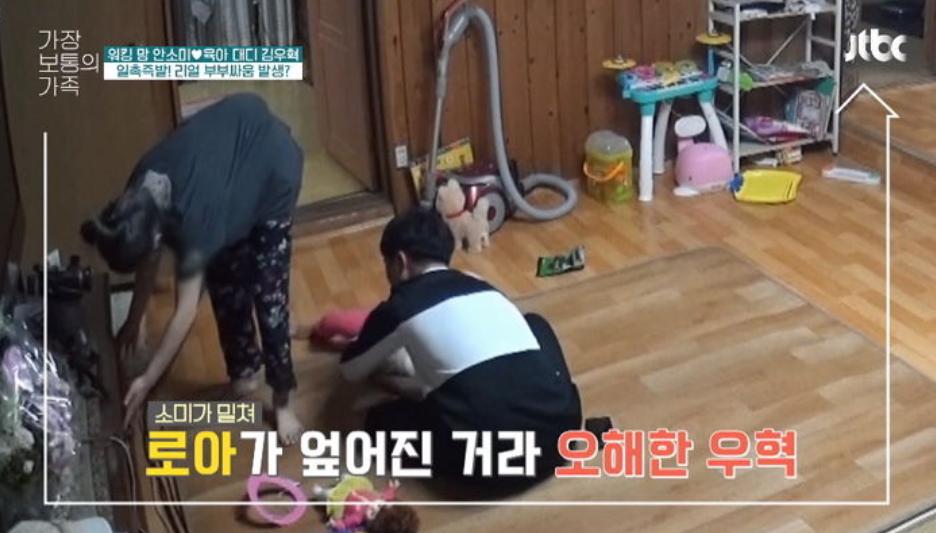 이에 살벌했던 시간이 좀 지나고 안소미씨는 다시 남편에게 가 “왜 짜증을 내냐고 여기서”라고 따져 물었는데 알고보니 안소미씨의 남편은 안소미씨가 딸 로아를 밀었다고 생각했던 것이다.
