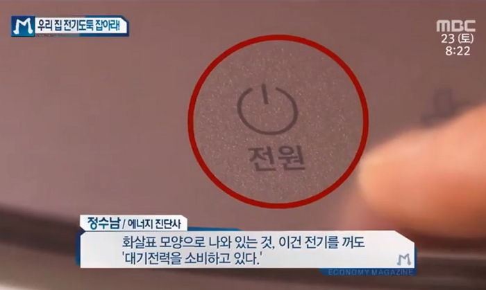 정 진단사는 “윗부분이 화살표 모양으로 나와 있는 것은 전기를 꺼도 대기전력을 소비 중이라는 표시다”라고 설명하면서 그럴 경우 반드시 전원을 끄고 코드까지 뽑아야 한다고 강조했다.