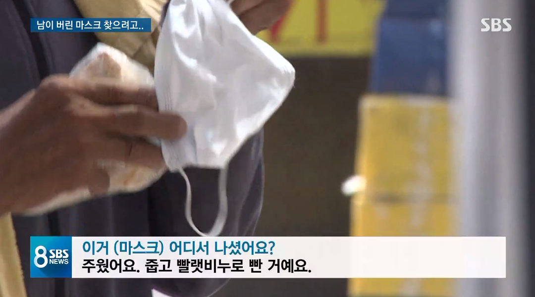 그들이 그럴 수 밖에 없는 이유는 바로 마스크 착용 때문인데 지난 25일, SBS ‘8뉴스’ 보도에 따르면 대부분의 노숙인들과 취약 계층 인원들이 길에서 마스크를 주워 쓰고 또 같은 마스크를 지속적으로 재사용하고 있다고 한다.