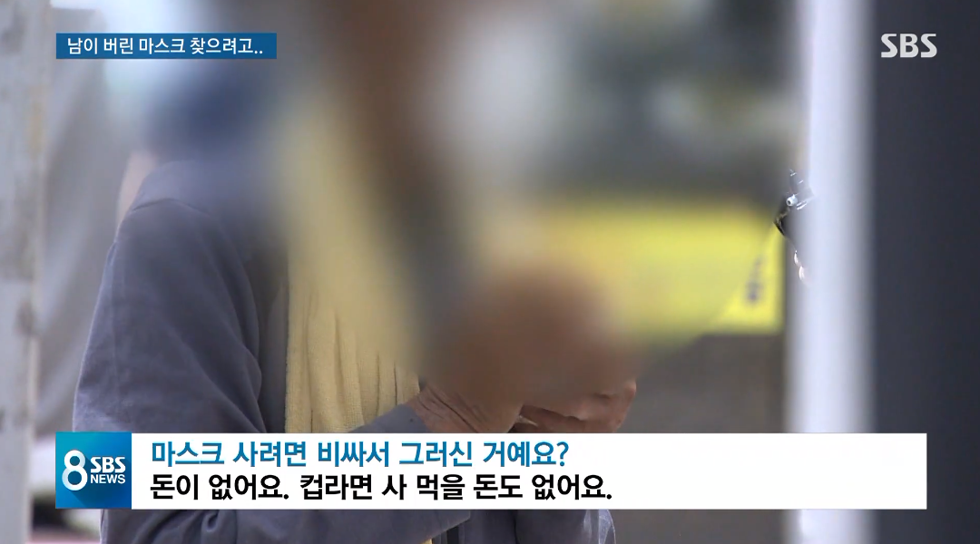실제로 취재에서 한 노숙인은 “(마스크를) 주웠어요. 줍고 빨랫비누로 빤 거예요.”라고 답해 안타까움을 자아냈다.