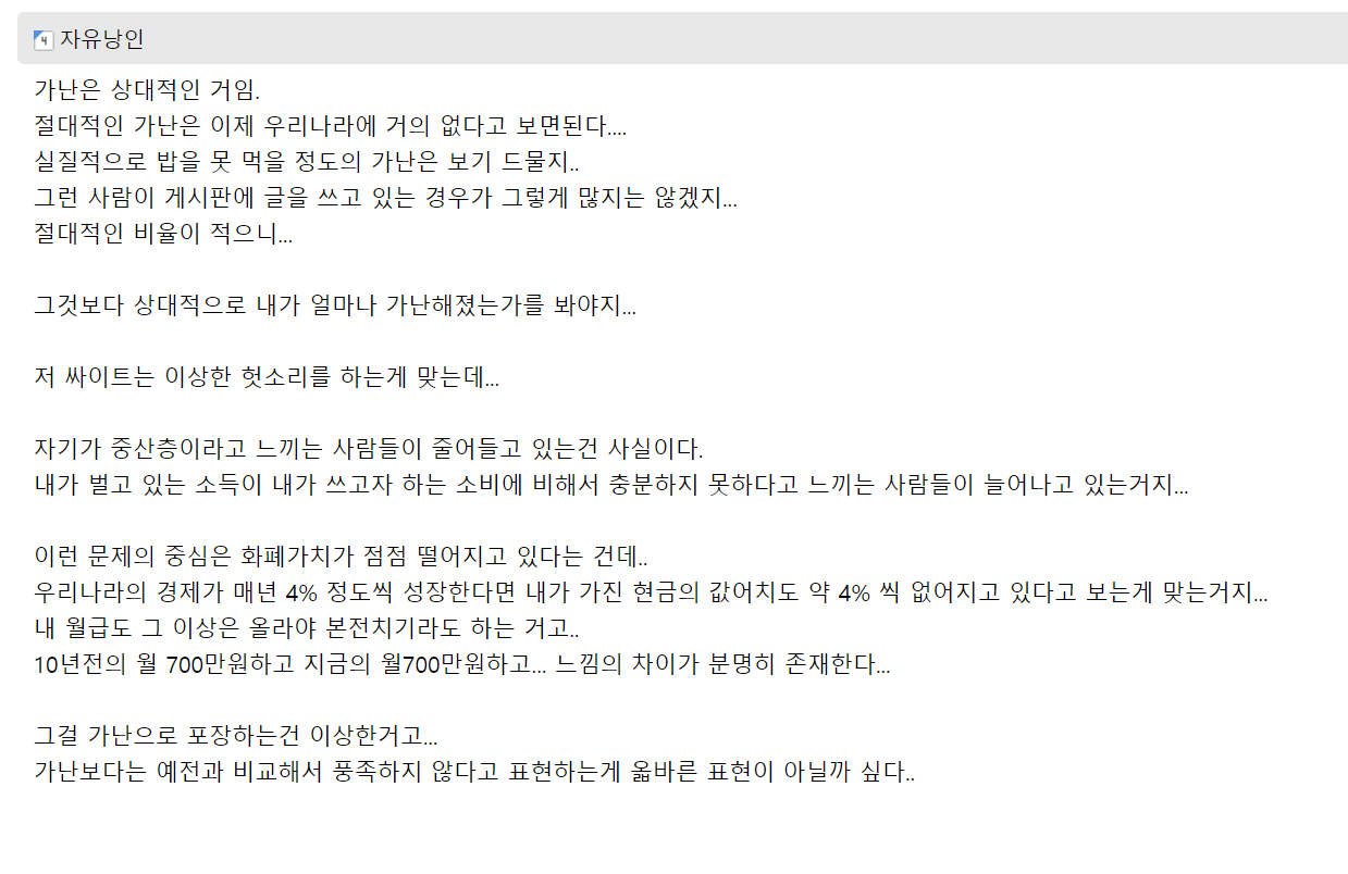 “부자들이 가난까지 훔쳐간다는 말이 괜히 나온 것이 아닌 것 같습니다.”라며 자신의 심정을 밝혔다.