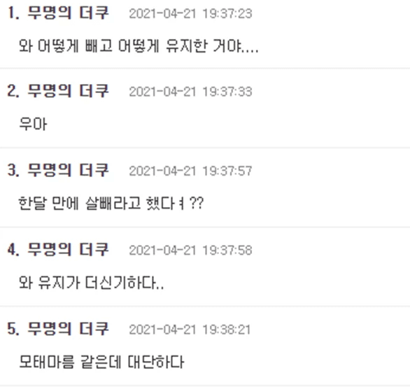 이를 본 네티즌들은 “와 어떻게 빼고 유지한 거야..”, “한달 만에 살빼라고 했다며??”, “와 유지가 더 신기하다”등의 믿지 못하는 반응을 보였다.