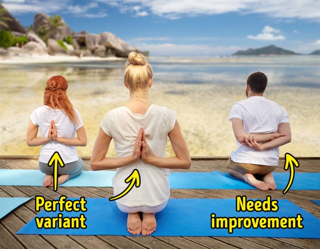 척추 및 어깨의 유연성을 동시에 테스트하는 동작이라고 하네요.