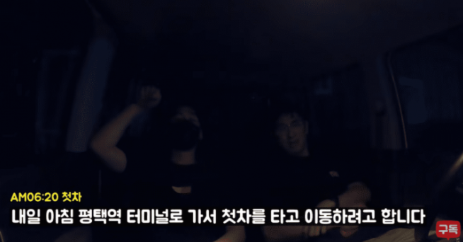 첫 도착지는 평택역이였으며, 그들은 강남역에서 6600번을 타고 약 40분을 달려 도착했고, 평택역에 도착한 두 사람은 ‘카쉐어링 서비스’인 쏘카를 빌려 3시간 동안 차 안에서 잠을 청했다.