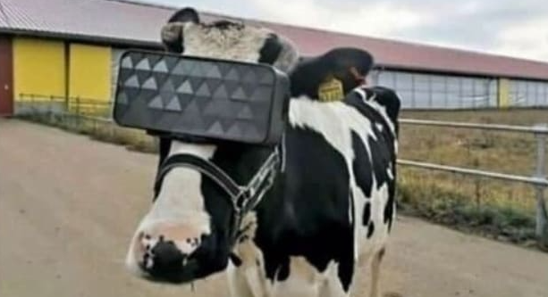 지난 2019년 모스크바 지방농업부에서 젖소에게 실시한 VR헤드셋을 착용하고 실험을 하는 모습이었다.