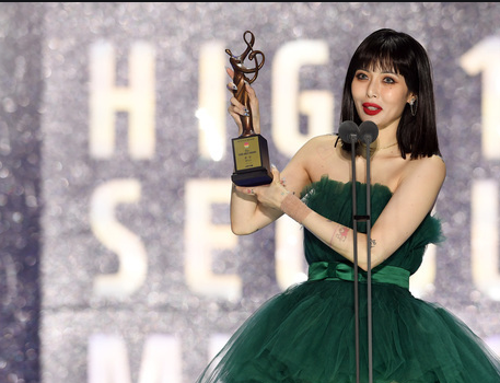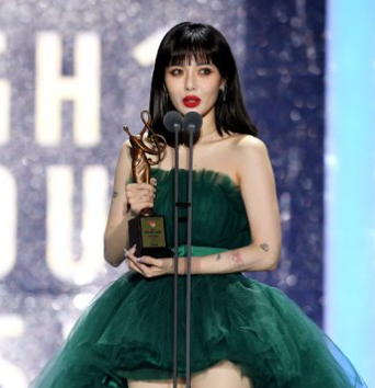 대리 수상을 받으러 무대에 올라간 현아는 “대리 수상은 처음”라 말했다.