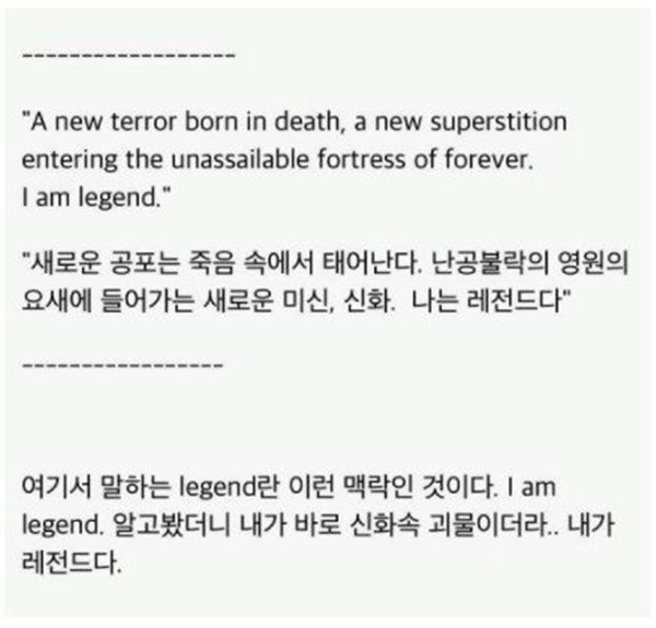 나는 전설이다 영화에서 ‘전설’의 진짜 의미