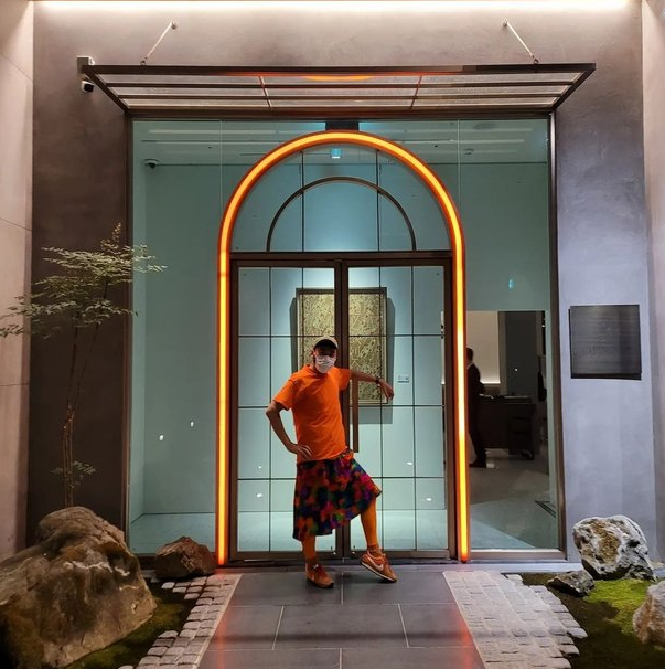 공개된 사진 속에는 자신의 단독주택을 둘러싼 담벼락에 거대한 ‘패러디 벽화’를 배경삼아 사진을 찍은 노홍철의 모습이 담겼다.