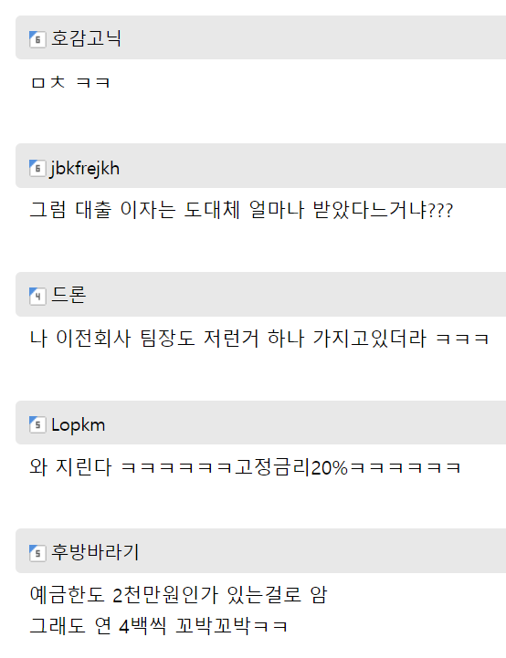 이를 본 온라인 커뮤니티 네티즌들은 “금리가 20%라니 정말 부럽네요.”, “저도 그 상품 지금 가입하고 싶어요.”라는 반응을 보였다.