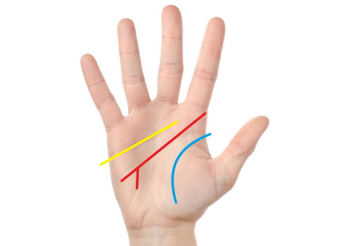 이런 모양의 손금을 가진 사람은 활동적이어서 따분한 걸 싫어하는 경우가 많다.