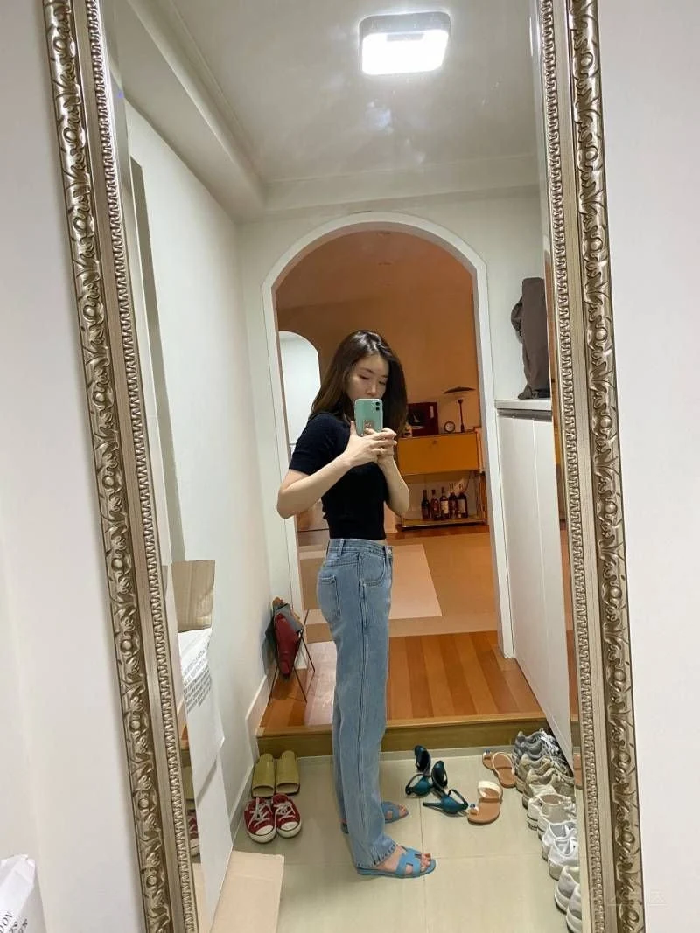 이해리는 “팬츠 후기 쓰러 총총총 제 키는 161입니다”며 솔직한 후기와 함께 사진을 게재했다.