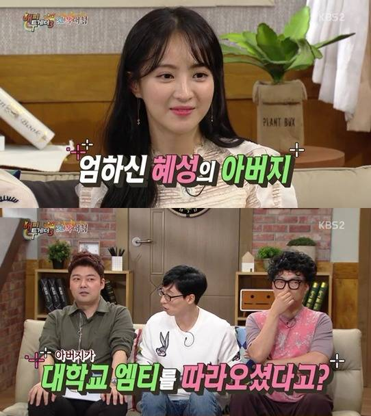 지난달 방송된 KBS2 ‘해피투게더’에는 배우 정혜성이 출연해 아버지가 MT에 따라왔던 사연을 전했다.