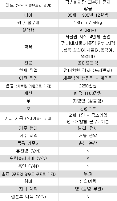 결혼정보회사에서도 역시 이 워킹홀리데이 경력을 문제점으로 삼은 것으로 보인다.