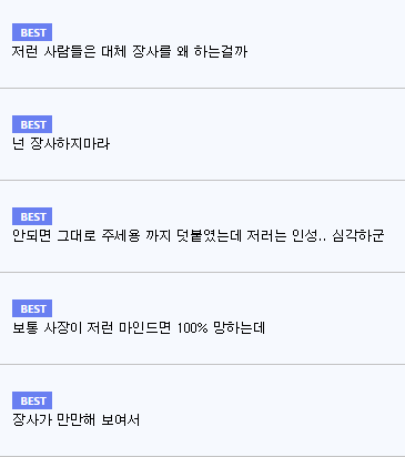 “저런 사람들은 대체 왜 장사를 하는걸까” , “넌 장사하지마라” , “인성 심각하군” , “망하겠네”