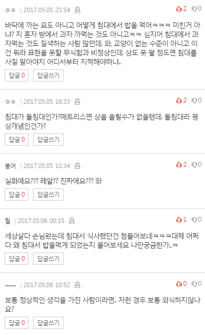 누리꾼들은 남친 부모님과 ‘안방 침대’에서의 식사라니. 체하지 않으면 다행일 듯.의 반응을 보였다.