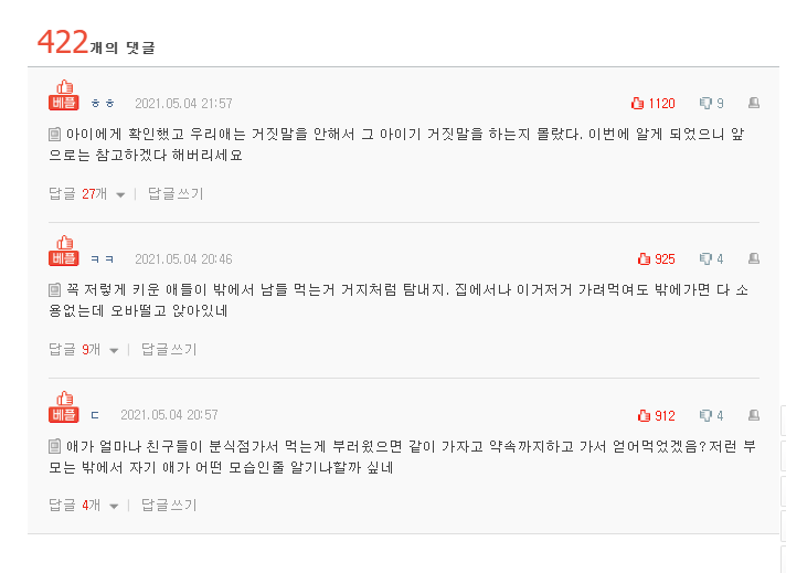 “A에게 이제까지 길거리음식 먹인적없이 키웠다고요즘같은 시기에 위험하게 함부러 음식을 사줬냐고부모에게 물어봐야 하는거 아니냐고다음부터는 조심해 달라”고말이다.