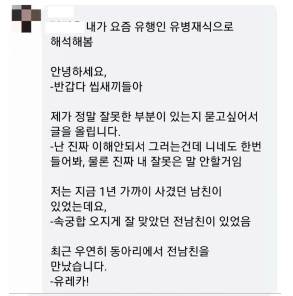 A씨의 글에 많은 이들의 반응은 당연히 싸늘했고 한 누리꾼은 A씨의 글을 유병재식 언어로 재해석해서 올려 화제가 됐다.
